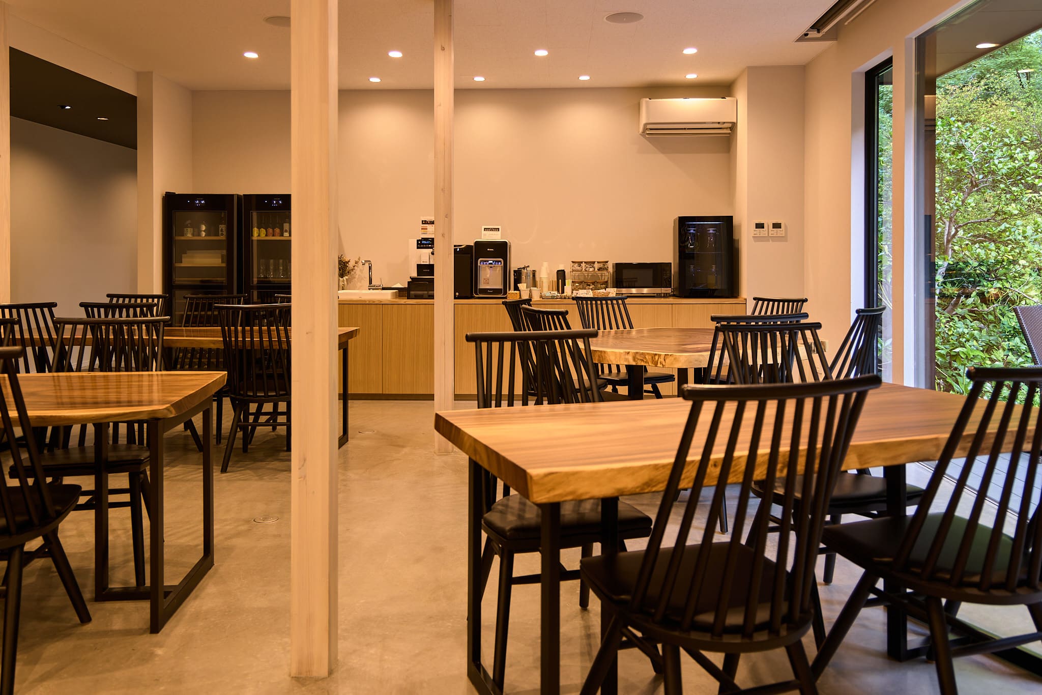 ダイニングにフリードリンクコーナーを設置。コーヒーマシンの本格的なコーヒーや地元名産のお茶、ジュースなどを無料でご用意。電子レンジも設置しております。