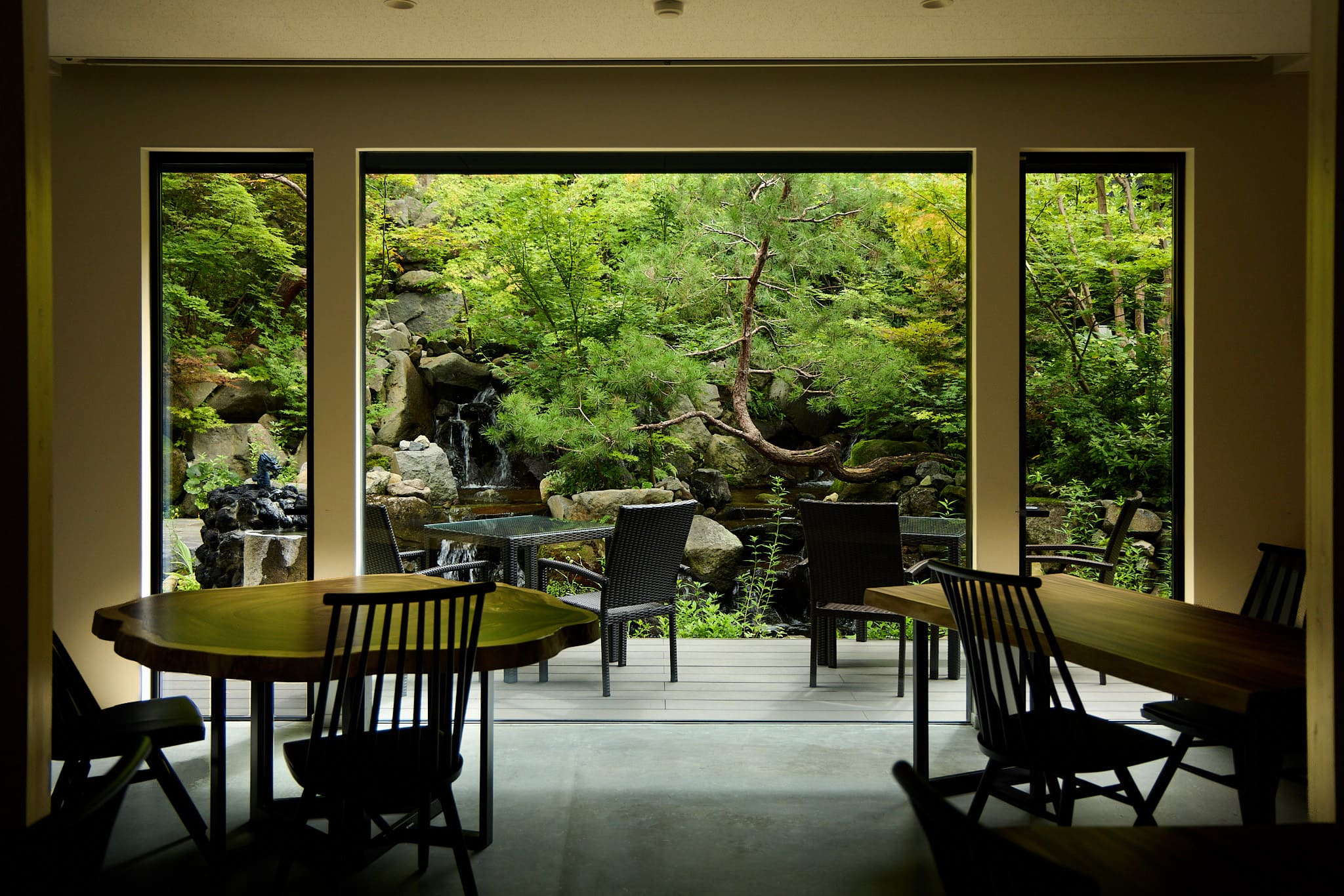 テラスからの庭園の眺めは抜群!四季折々で違う表情をみせる自然の美をごゆっくりとお楽しみください。