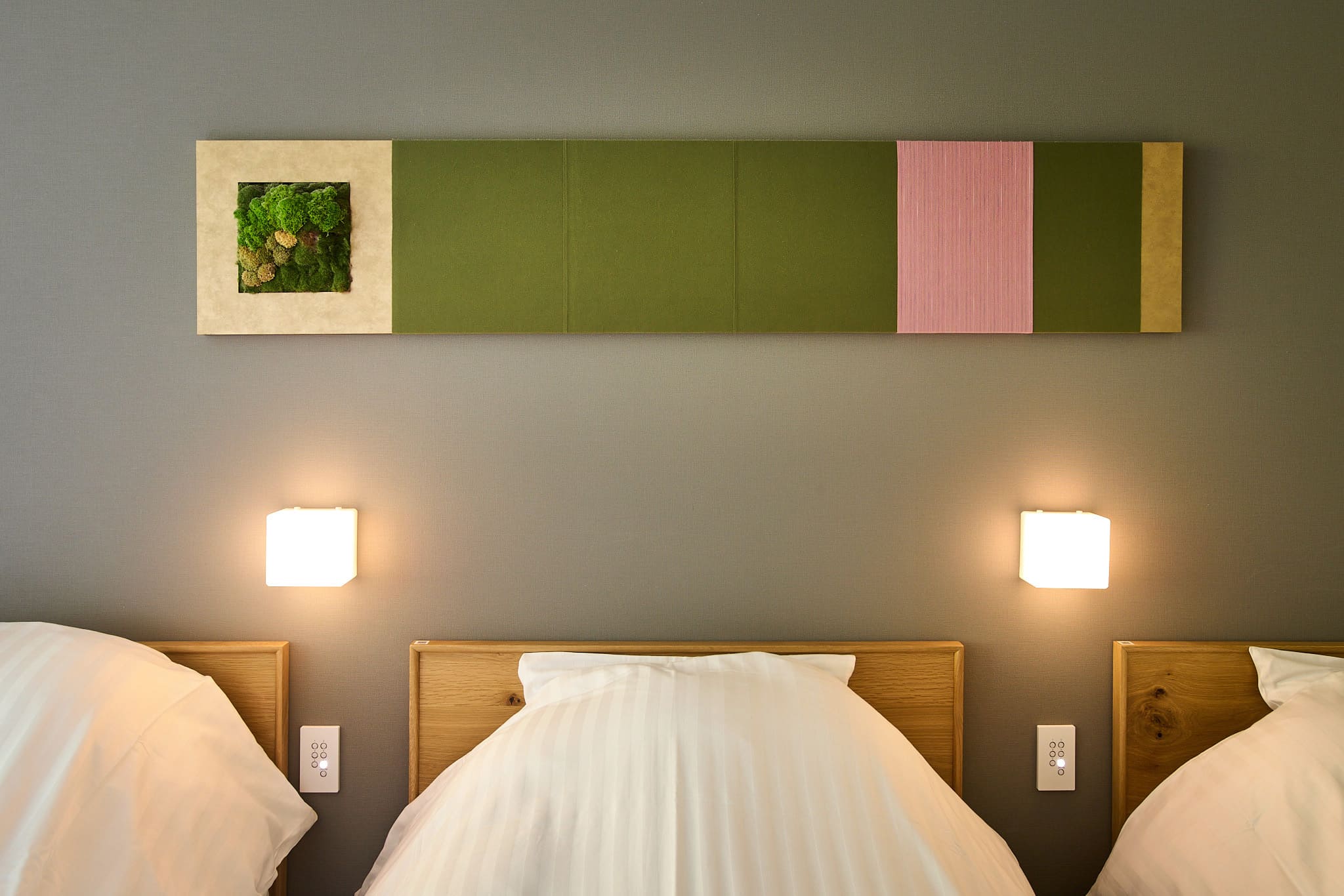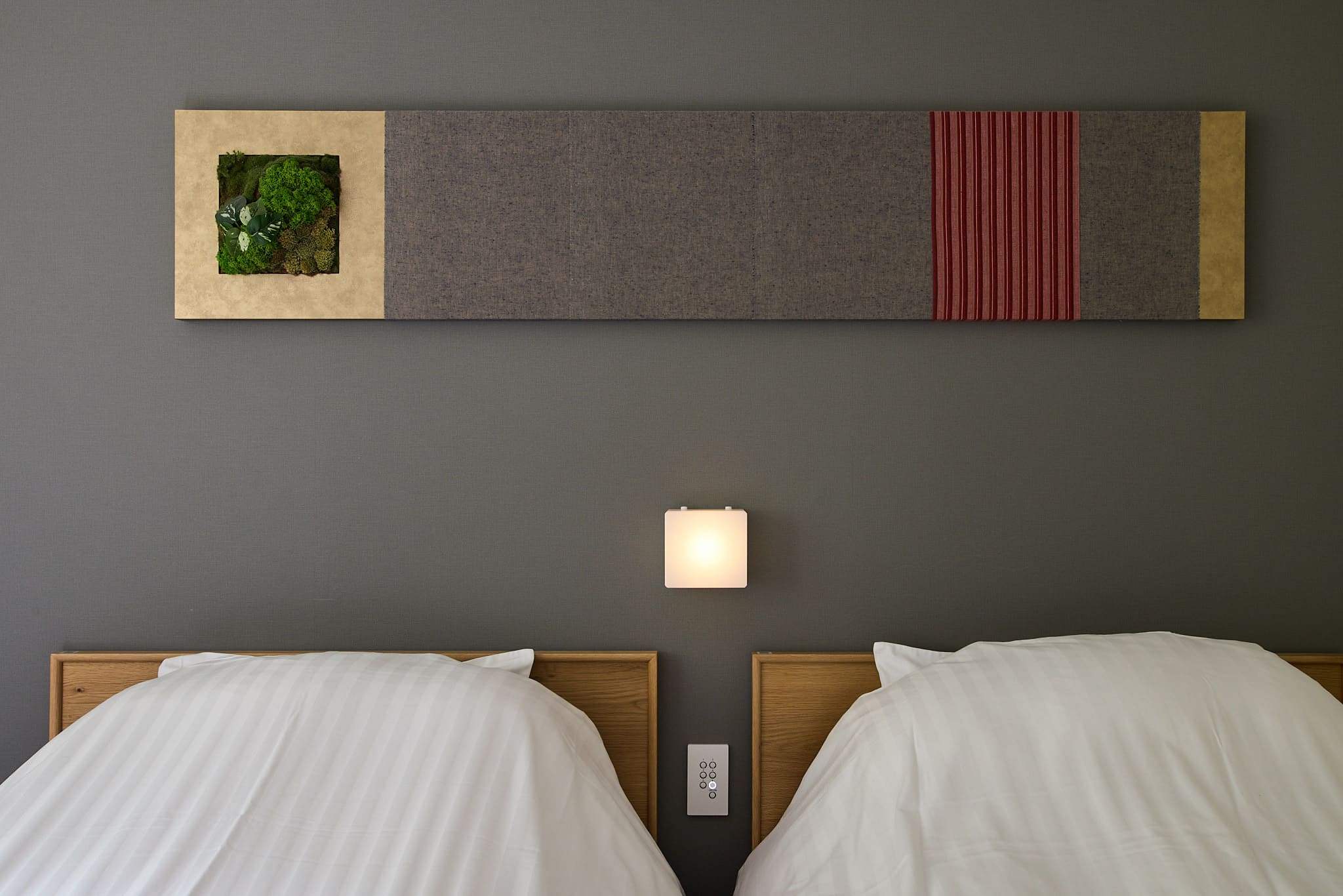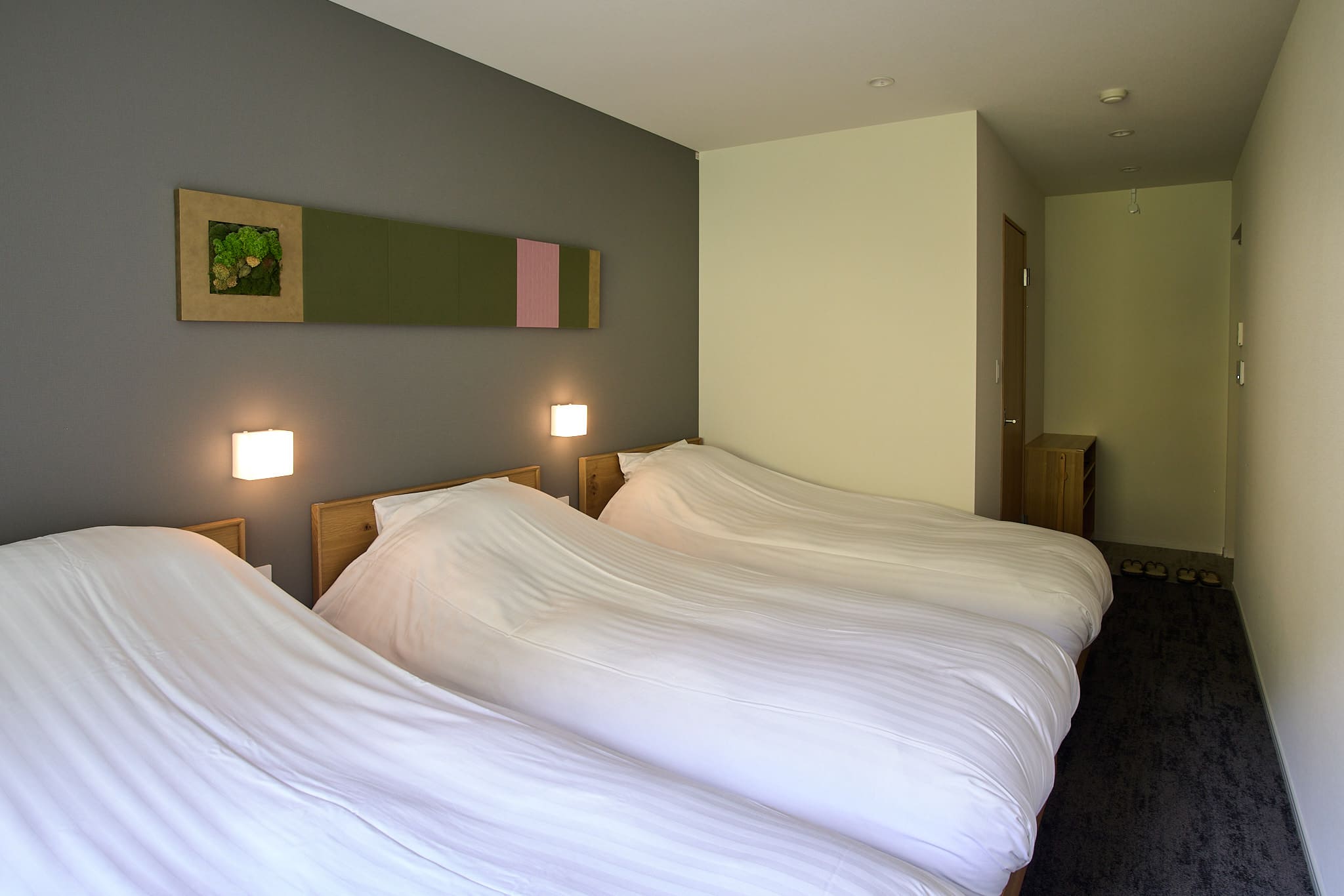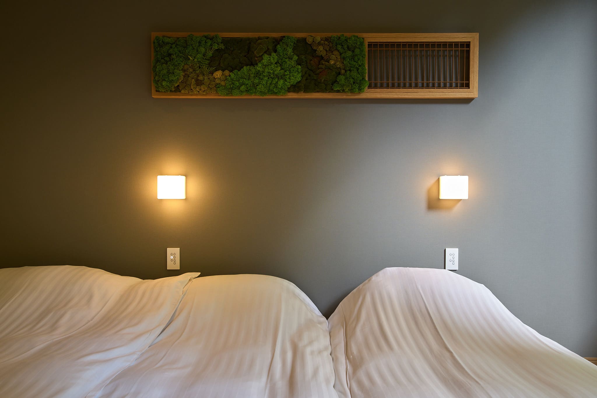 2階ツインルームは洋室タイプのスタンダードツインルームです。旅館にいながら、ホテル感覚でお寛ぎいただけます。 一人旅やビジネス利用などお気軽にご利用ください。お部屋の窓から石原和幸プロデュースの庭園をお楽しみいただけます。シングルベッド2台のお部屋です。