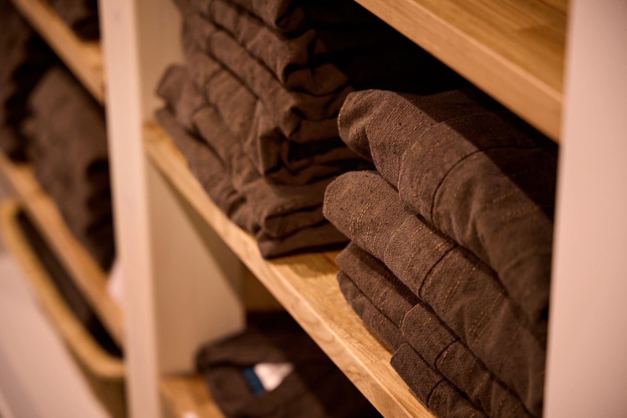 作務衣と羽織をご用意しております。館内着としてご利用いただけます。2階作務衣棚からお持ち下さい。
