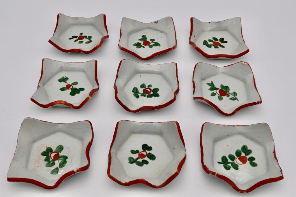折鶴は俎皿や木ノ葉皿などとともに魯山人が発想した独自の器だが、緑の口紅は効果的で気品を醸している。縁の起き具合も厚みもまちまちで実に収納しにくく、料理屋泣かせの器であった。しかし魯山人はその不都合をかえって好んだと思われる。