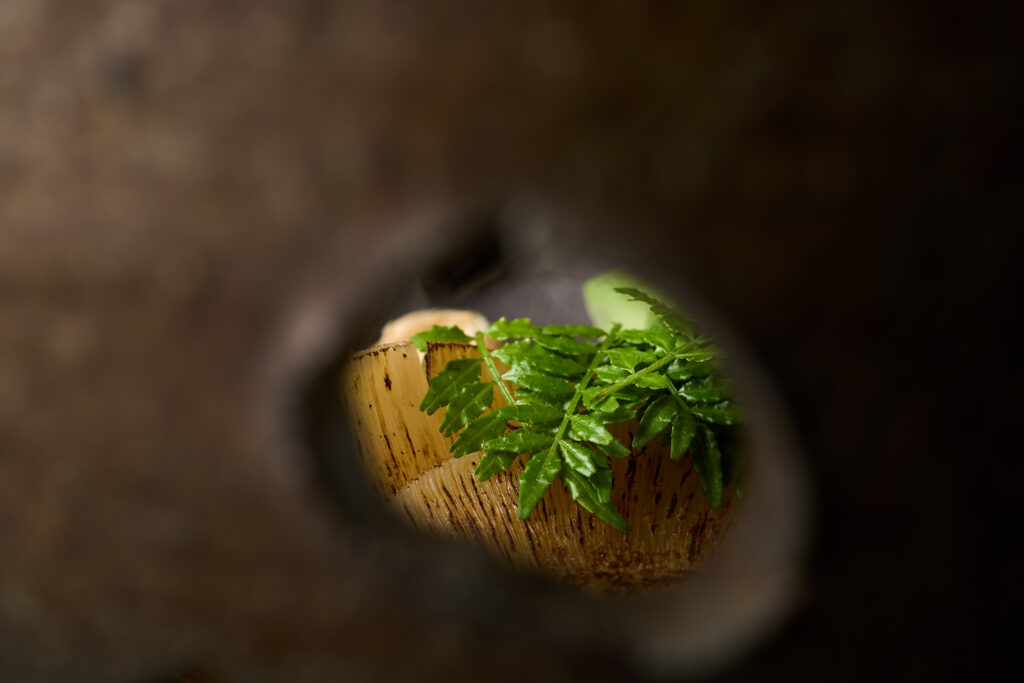 魯山人先生は晩年世界的な彫刻家であったイサム・ノグチさんや奥様であられた李香蘭さんらと幾度も備前に赴きます。「備前の土は世界最高の土である。」と言い多くの作品を残しました。本作品は透かしの技法で器体をいくつもの穴があけられています。その透かしの意匠を水玉と捉えています。透かしの光を面白く演出して展示したり、笹の葉を敷いて焼き魚を出したり、葡萄や桃などの明るめの果物などがこの器には合いそうです。昭和25年頃の作品。