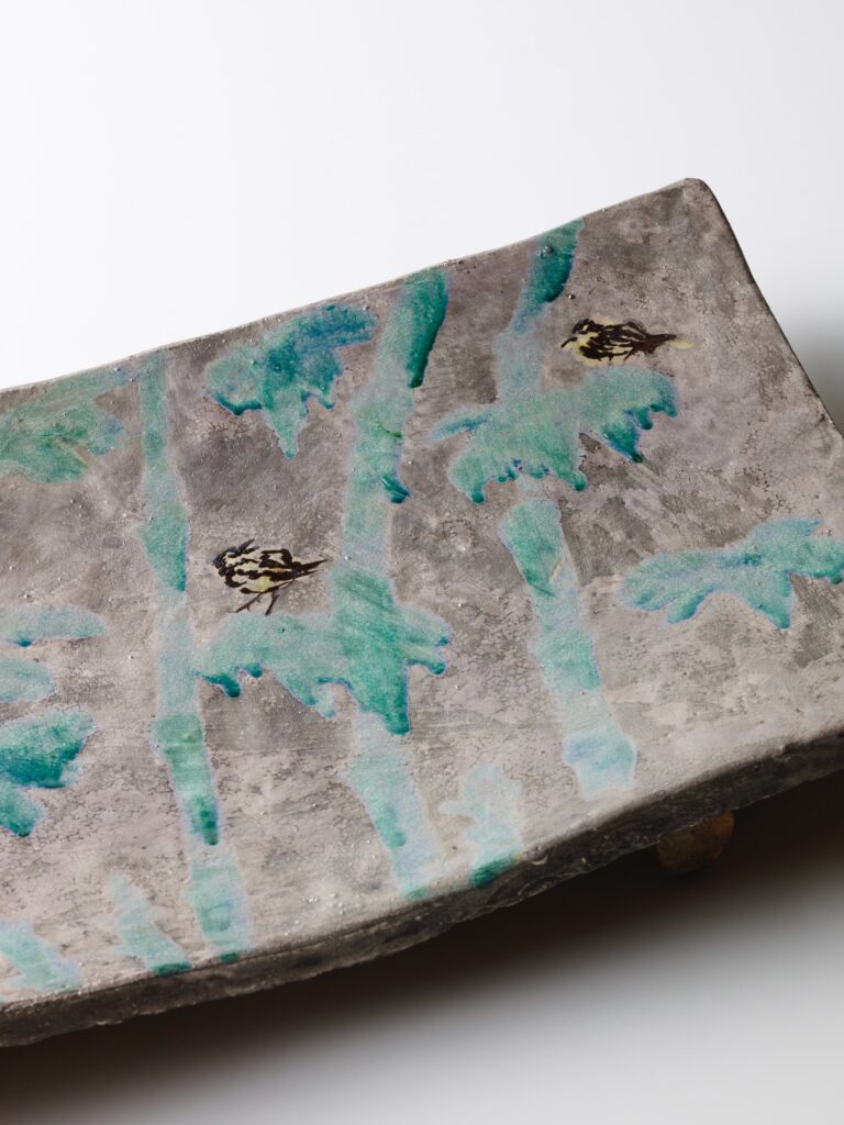 266.銀彩竹雀長鉢(共箱・友斎箱)