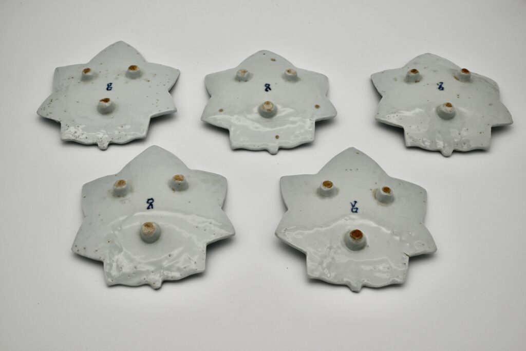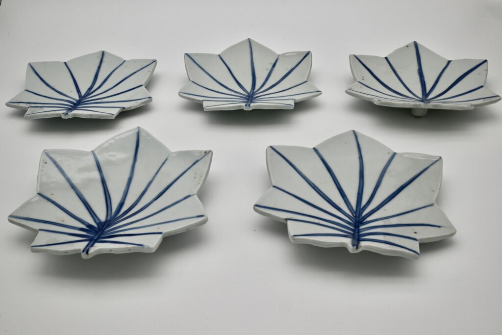 白く澄明な肌にさらりと施された染付が見るも涼しげで清々しい器である。魯山人は同意匠の古染付厚手のものを所持していた。魯山人は古染付のものを指して、誰もが日本からの注文に違いないと思うほどに純日本好みといい、葉の形こそ写実に近いが、葉脈は理屈に合わず、だがこの理屈を離れ、間違いがあってこそ芸術の面白い世界が開かれるとしている。本歌を理解しているからゆえに、薄手に作っているところに魯山人のこだわりと美意識がうかがえる。魯山人作品の中でよく知られているものだが、実際に目にする機会は思いのほか少ない作品である。