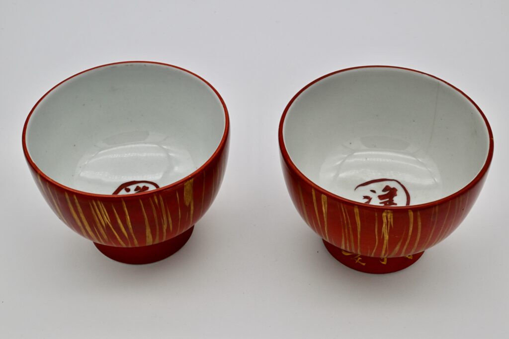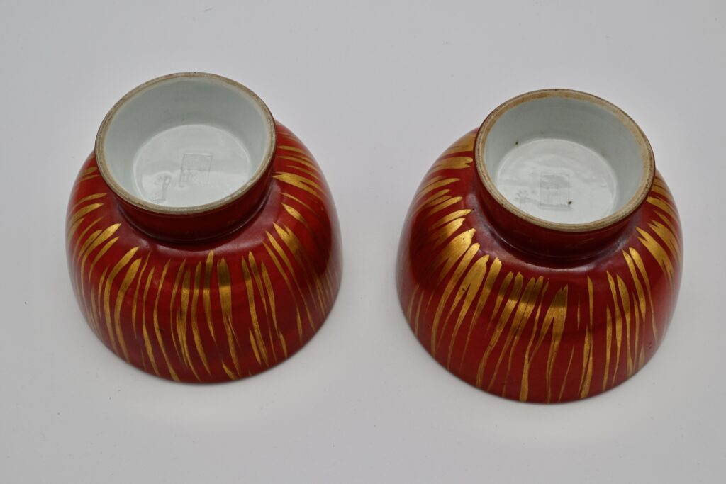 須田菁華が成形を担当し、魯山人が金彩で画筆を施した極めて珍しい合作作品。端正に挽かれた形に、魯山人独自の洒脱な筆致による金彩が品よく映え、作者同士の高い美意識が見事に響き合っている。見込みには魯山人自筆による 「洗」 の一文字が大胆に書き入れられており、用途を明確にしながらも、器に生命を吹き込むかのような力強さを感じさせる。食の器を極めた魯山人ならではの格調と遊び心が同居した逸品で茶席や酒席においても存在感を放つ特別な作品である。