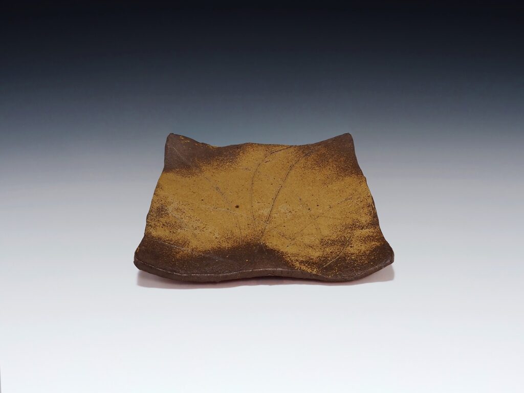 晩年の備前四方鉢です。昭和30年以降には、備前作品は徐々に、軽く固く、見た目に白いゴマ模様が多く出るようになりました。これも古備前等を自分自身で消化し更に良い(魯山人らしい)物を創る姿勢の表れでしょう。最晩年の作品には、ゴマが白く焼け、窯変が赤に見える、まるで、今までの備前と酸化(窯変)還元(白地に火襷)が入れ違ったような、素晴らしく胸躍る作品を創っています。この作品も、一枚単独で共箱にしてある、軽やかに焼きあがった魯山人備前の名作です。・昭和32年(1957)頃の作品