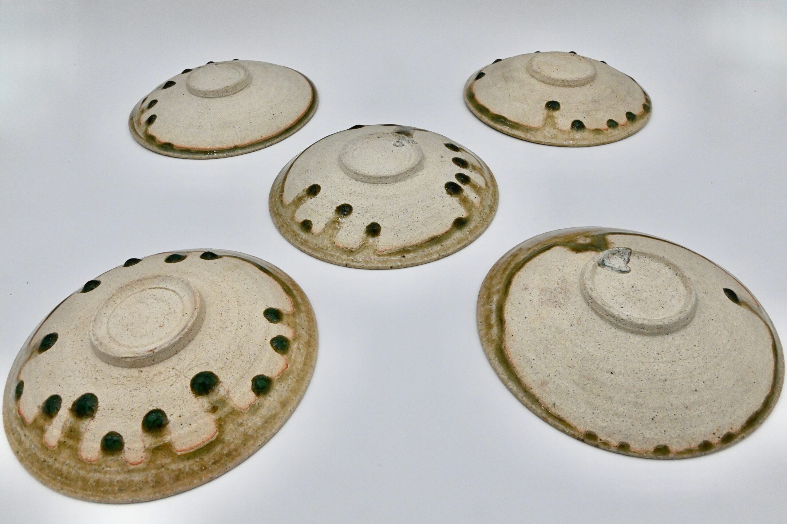 伊賀釉を回りに綺麗に掛け、使いやすそうな平向付です。魯山人は伊賀釉をほとんど溜まりを出し深い緑色が出るように流し掛けています。品の良い焼き上がりで、どんな食材を載せても映えそうです。作品を眺めていると色々と食べ物が浮かび上がり、楽しくなってきます。毎日使え身近における素晴しい作品となっています。・昭和15年(1940)頃の作品