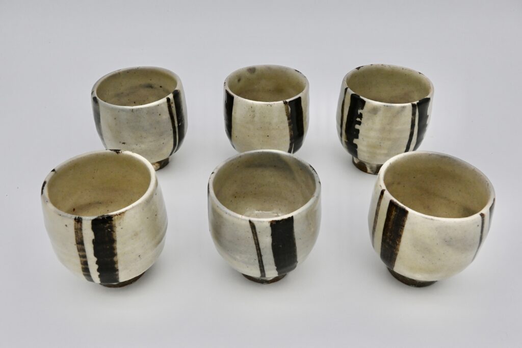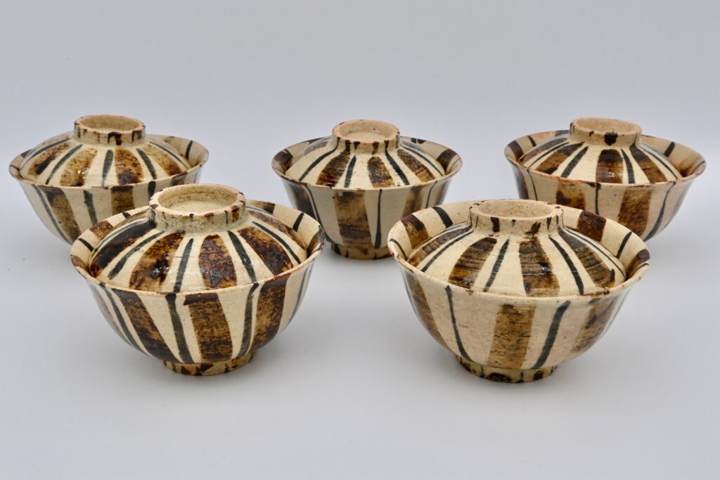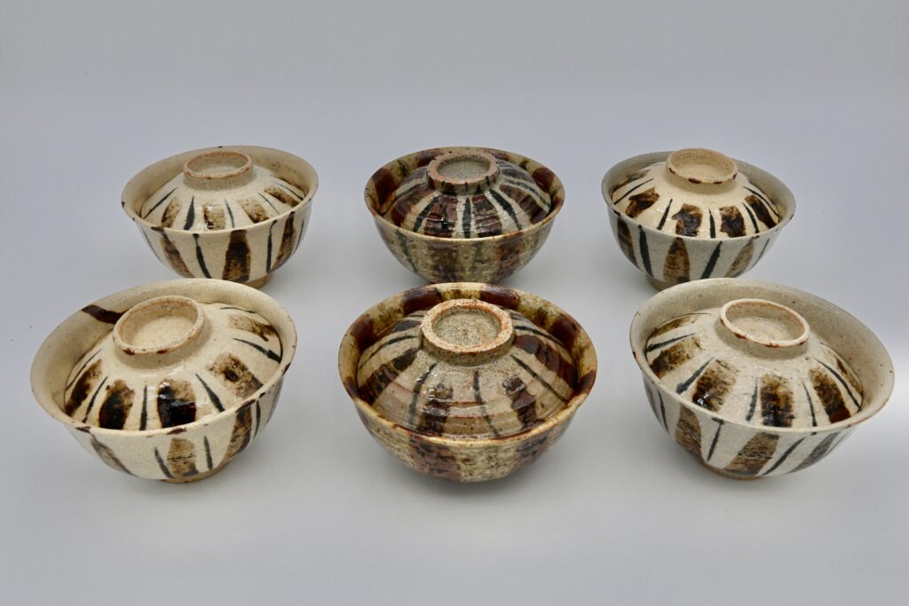 159.絵瀬戸子持縞文蓋付茶碗 6客(黒田陶々庵 識箱)
