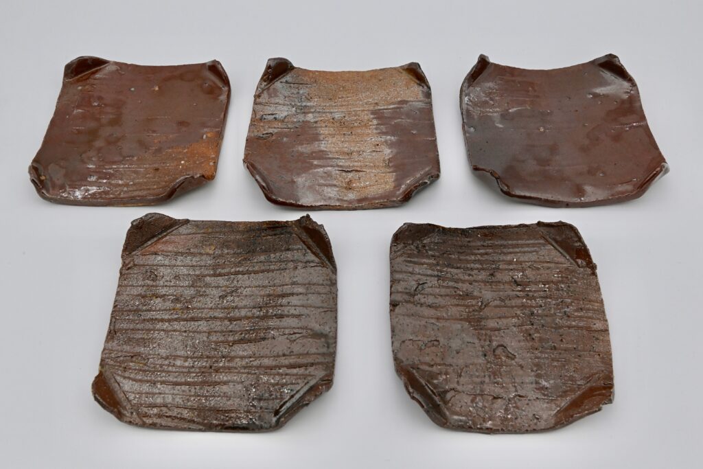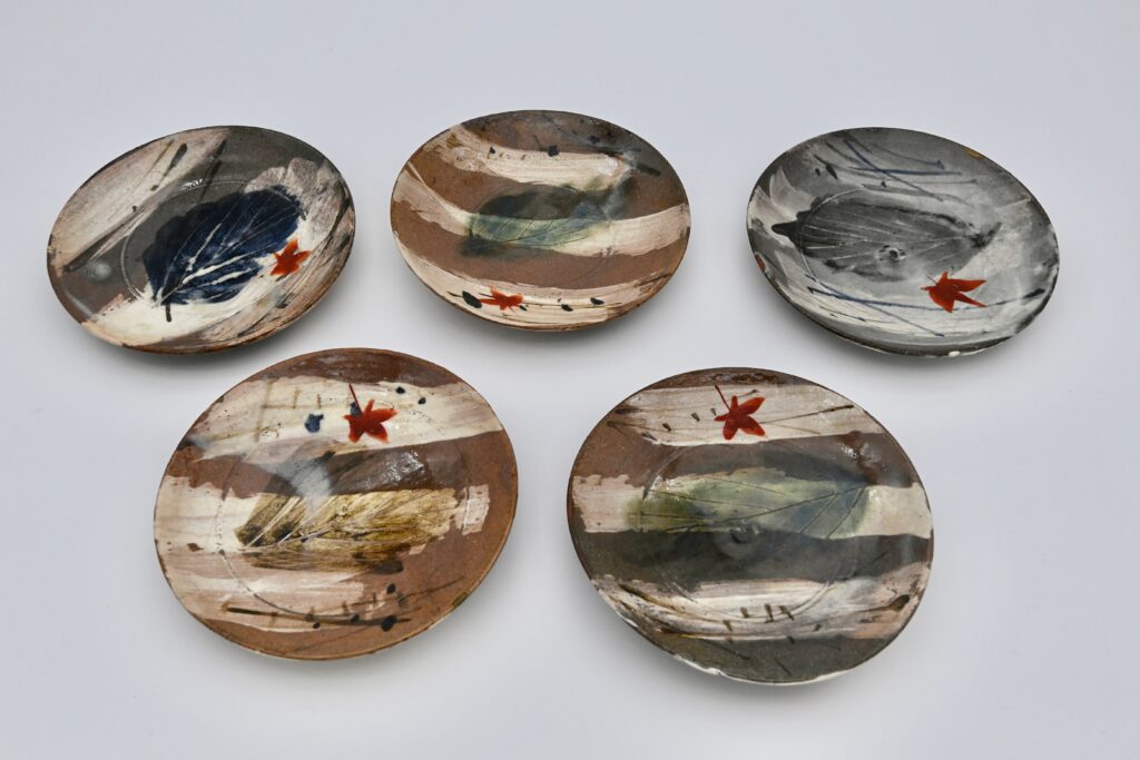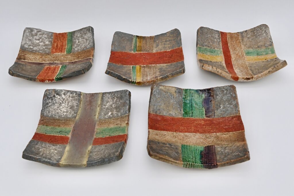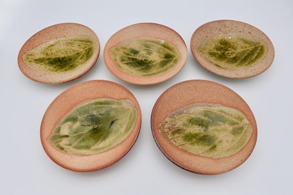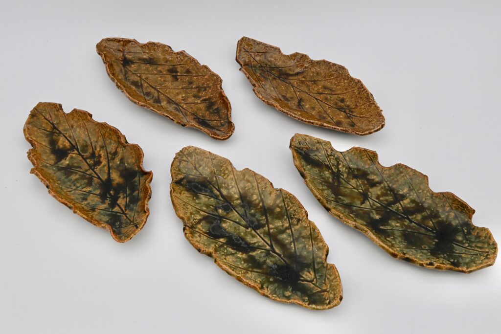 140.織部木の葉皿 五客(善田喜一郎 初代黒田陶々庵識箱)