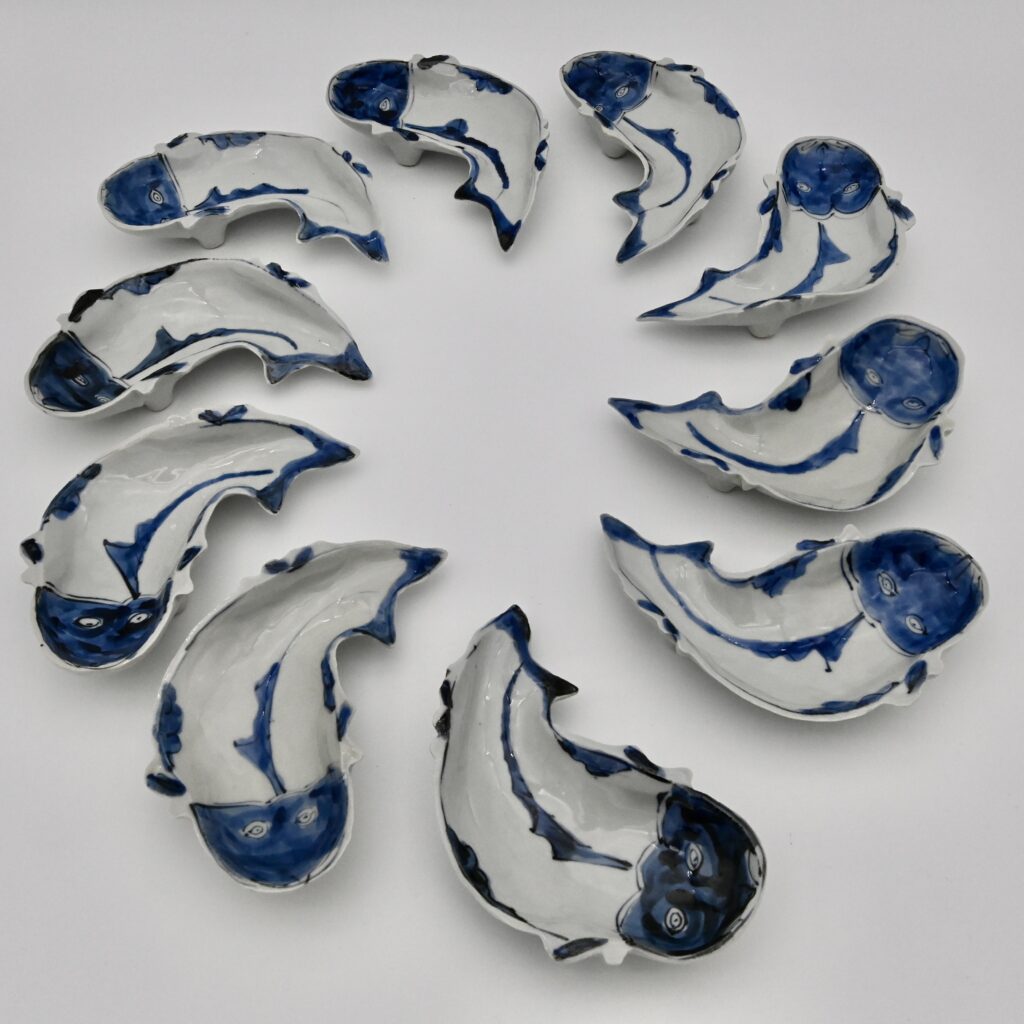 143.織部箸置 魚形 5客(陶々庵識箱)