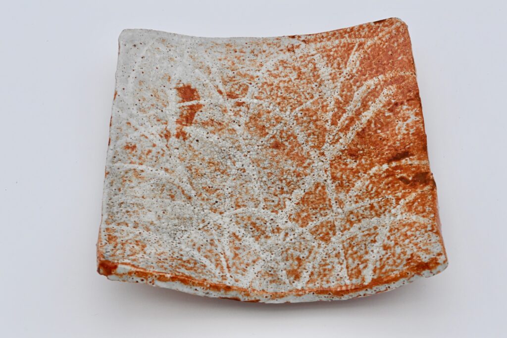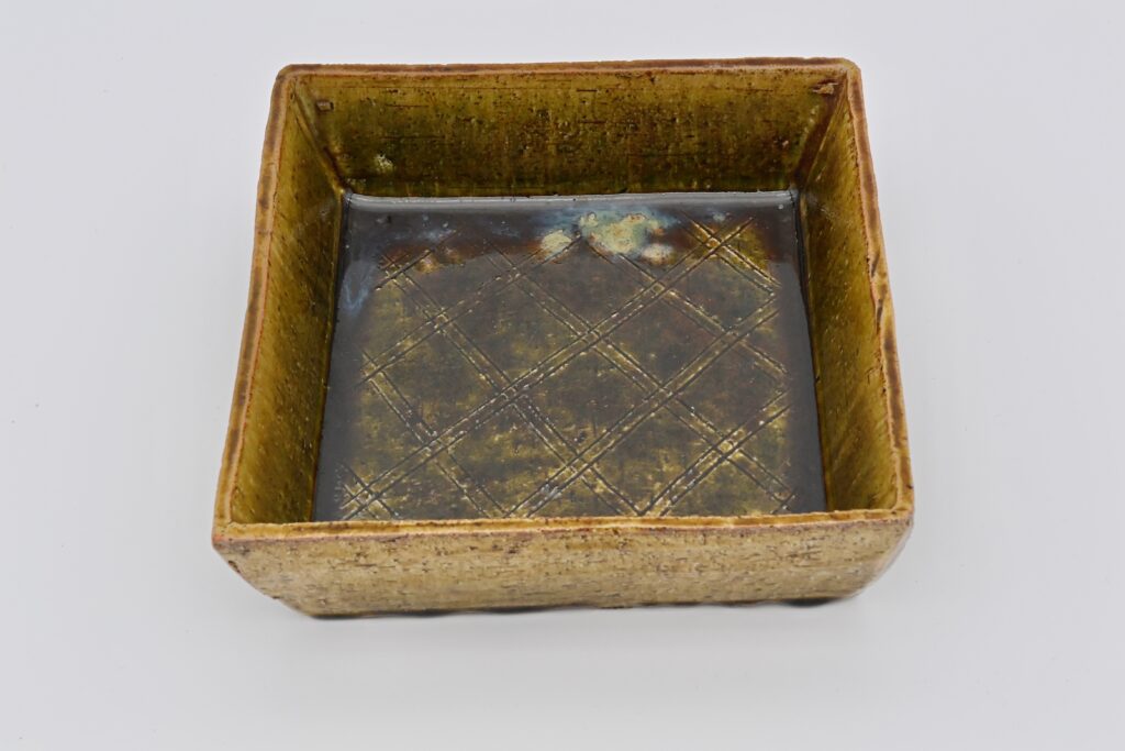 155.志野 草絵 四方鉢(加藤唐九郎箱)