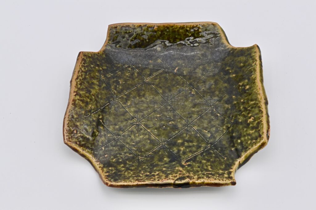 137.織部葦文扇面鉢(黒田陶々庵箱)