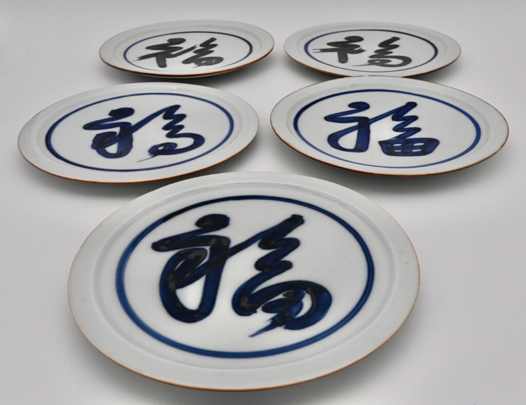 173.色絵吹寄平向 5客(二代黒田陶々庵識箱)