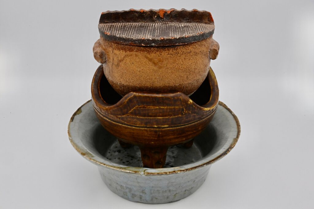 192.鉄釉蓋付土鍋/焜炉/水入(黒田陶々庵 識箱)