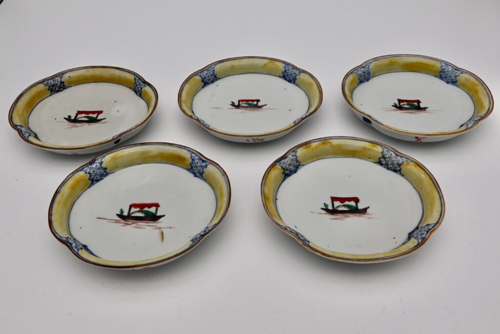 29.古九谷風舟遊図皿 5客(黒田箱)