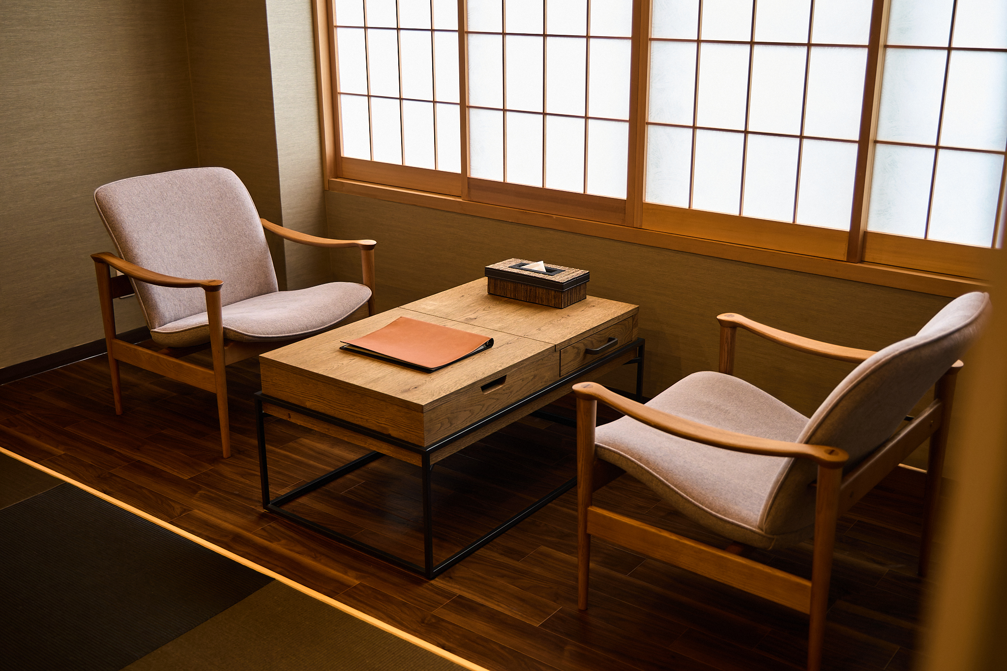木の温もり漂う和モダンな客室 こだわりの家具でごゆっくりとお寛ぎいただけます。